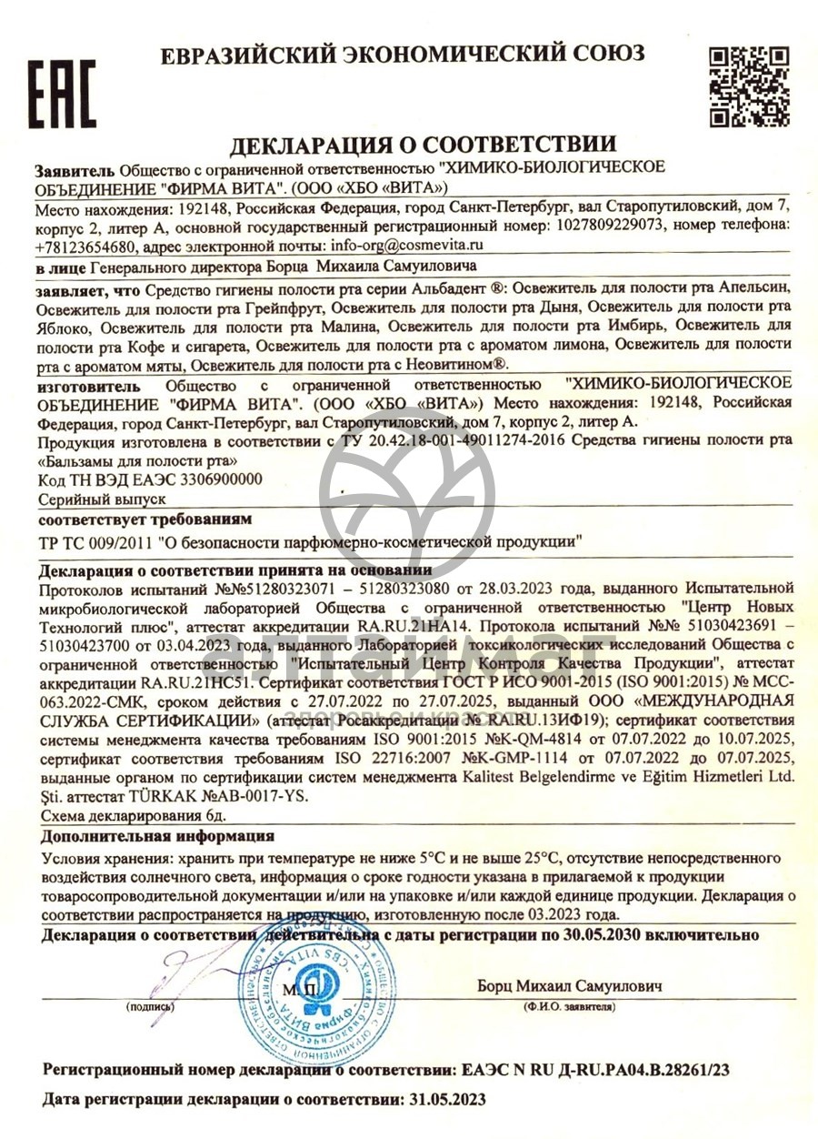• Чтобы купить Освежитель для рта «Альбадент грейпфрут», 35 мл совершите всего несколько шагов: укажите количество продукта и нажмите на кнопку «Купить».
