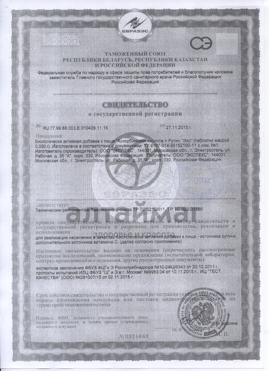 Аскорутин Экотекс №50 фотография Аскорутин Экотекс №50