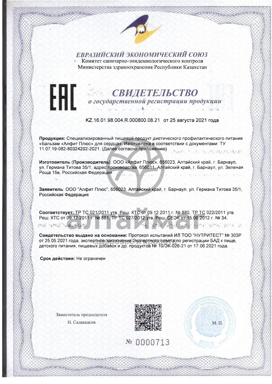 Есть вопросы по товару "Бальзам Алфит Плюс для сердца 250мл"?