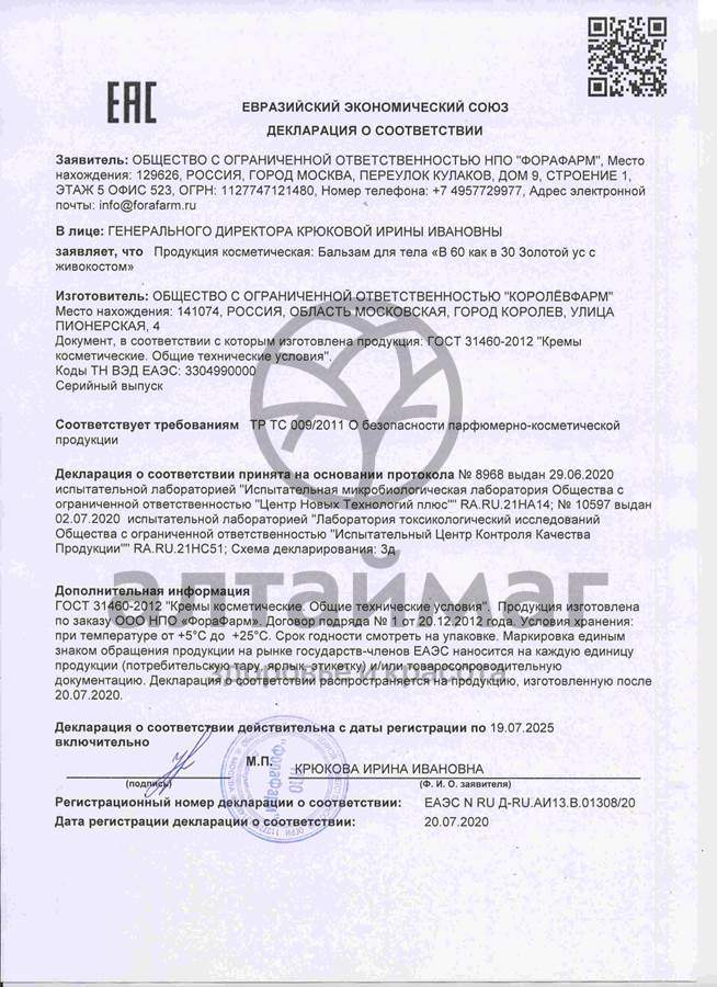 - Купите В 60 как в 30 Золотой ус с живокостом бальзам для тела 125мл в Ельце по доступной цене 175 ₽ с доставкой на дом или заберите Ваш заказ в Ельце из ближайшего пункта выдачи, сделав заказ на AltaiMag.ru.