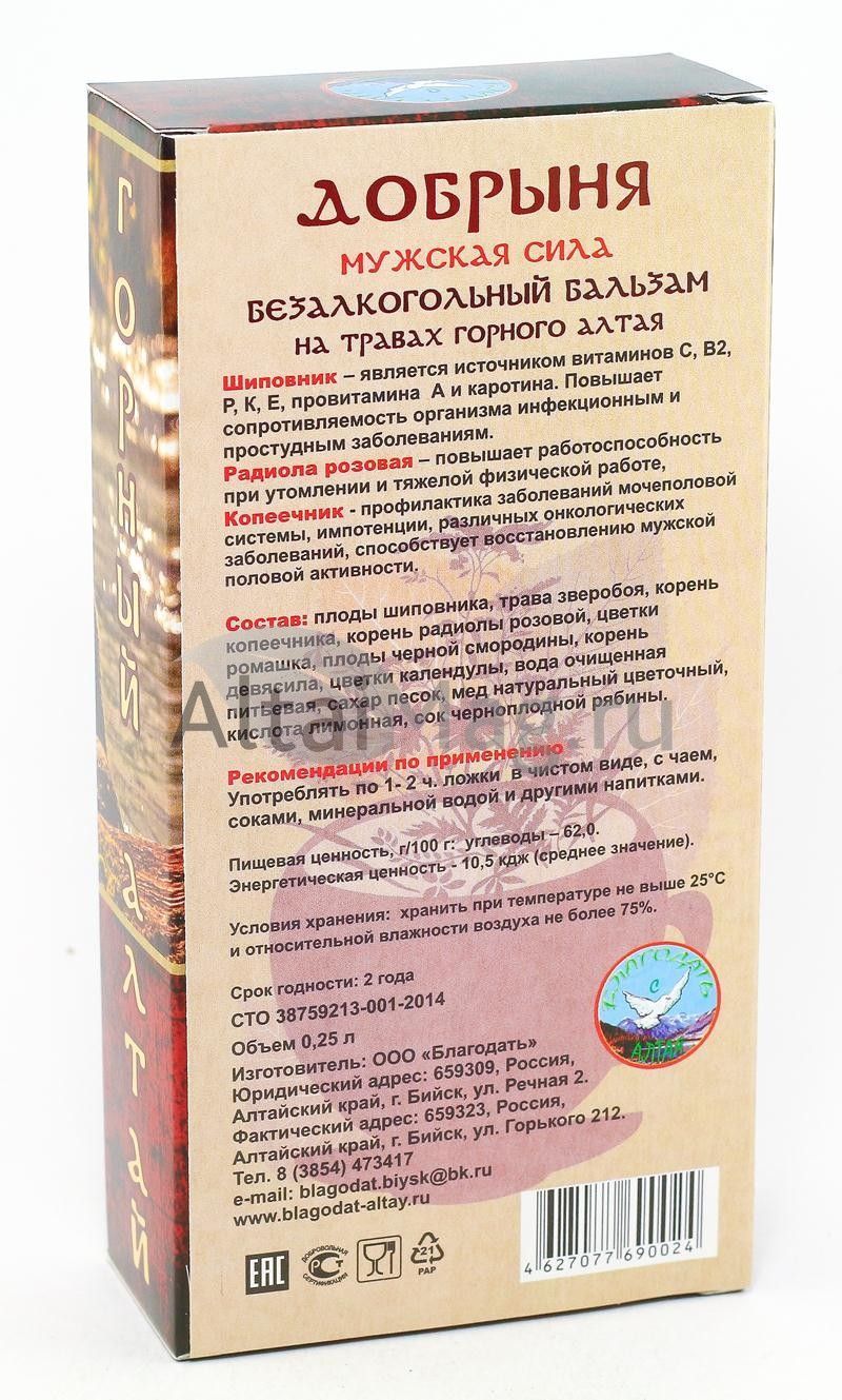 • Купите Бальзам добрыня (мужская сила) 250мл в Ельце по доступной цене 297 ₽ с доставкой на дом или заберите Ваш заказ в Ельце из ближайшего пункта выдачи, сделав заказ на AltaiMag.ru.