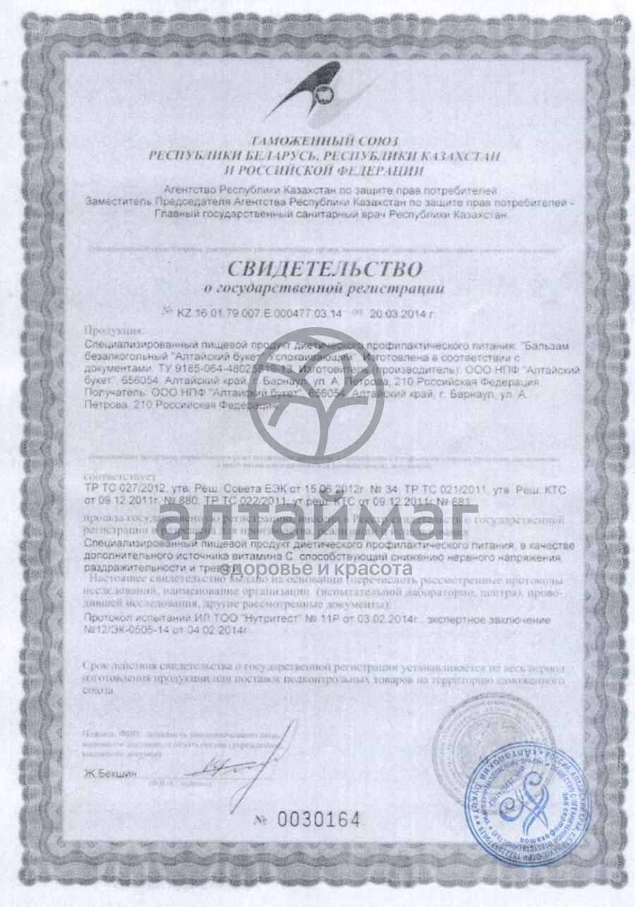 Обладает мягким успокаивающим действием. Показан при лёгких формах депрессии, стрессах, сбоях в работе сердца и нарушениях сна. Секрет его эффективности комплекс натуральных лекарственных трав, дополняющих и усиливающих свойства друг друга. Напиток регулирует работу как центральной, так и вегетативной нервной систем. Валериана снимает напряжение, мята устраняет спазмы сосудов головного мозга, мелисса предотвращает невротические расстройства и расслабляет. Этот бальзам с великолепным вкусом и замечательным ароматом подарит спокойствие и хорошее настроение.