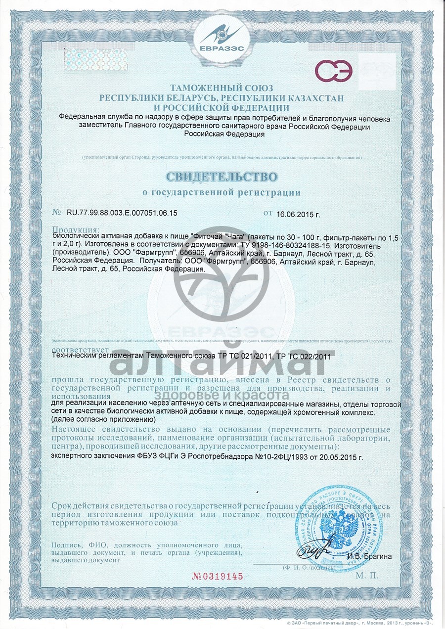 Рекомендуется в качестве источника полифенольных соединений, содержит хромогенный комплекс. Чага обладает свойствами: способствовать заживлению язвы двенадцатиперстной кишки, а также язвы желудка; положительным образом сказывается на работе нейрогуморальной и нервной системы нашего организма; чага обладает свойством улучшать работу желудочно-кишечного тракта; очень неплохо укрепляет иммунитет; обладает антибактериальными свойствами; вполне может использоваться как мочегонное средство; чага обладает свойством стабилизировать пульс и нормализует давление; оказывает влияние на дыхательную и сердечно-сосудистую систему; является противовоспалительным средством; чага обладает антивирусными, а также антигрибковыми свойствами; способствует заживлению ран различной степени тяжести; борется со злокачественными новообразованиями; чага уменьшает уровень сахара в крови.Состав: