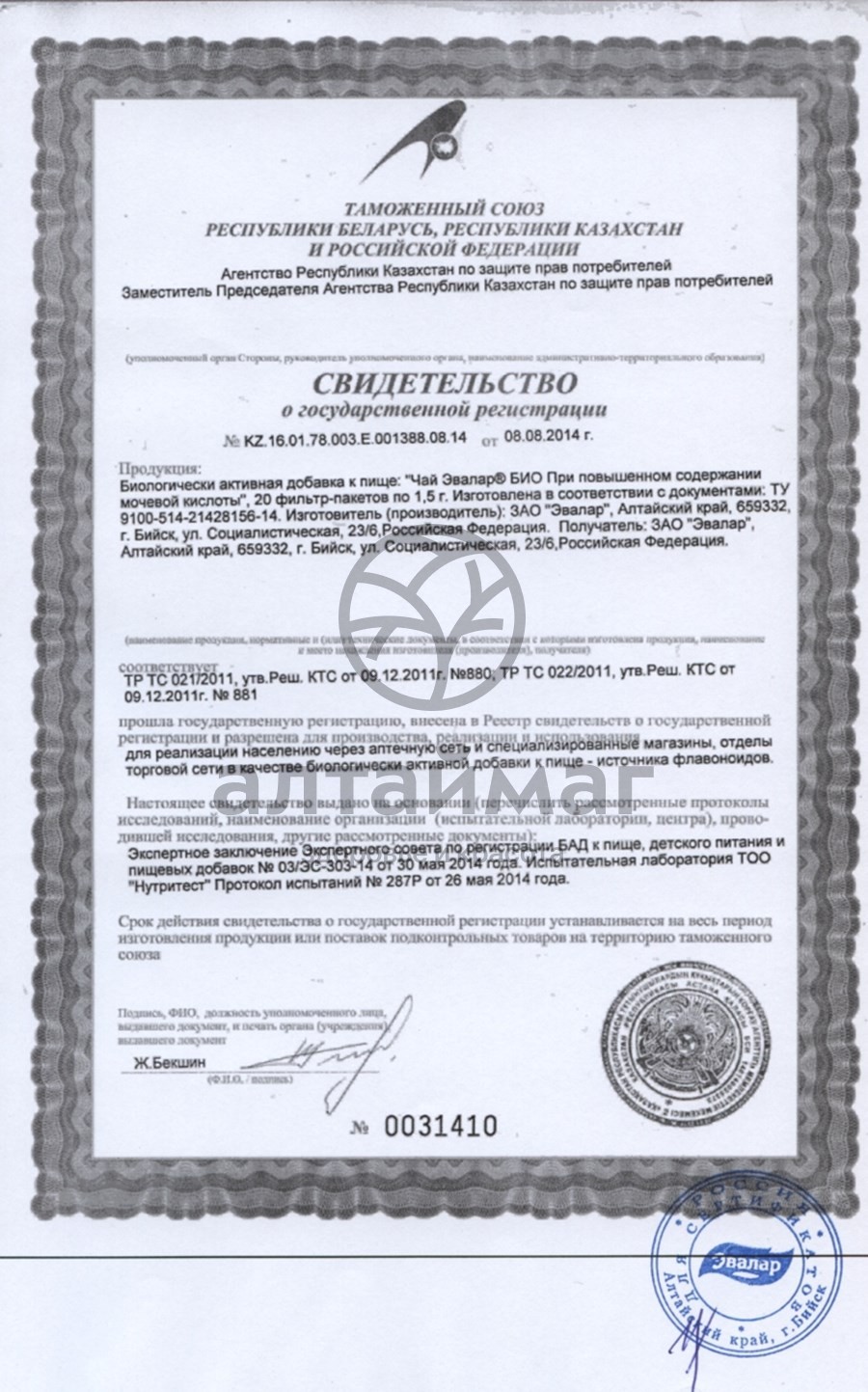 - Чтобы купить Чай при повышенном содержании мочевой кислоты эвалар №20 совершите всего несколько шагов: укажите количество продукта и нажмите на кнопку «Купить».