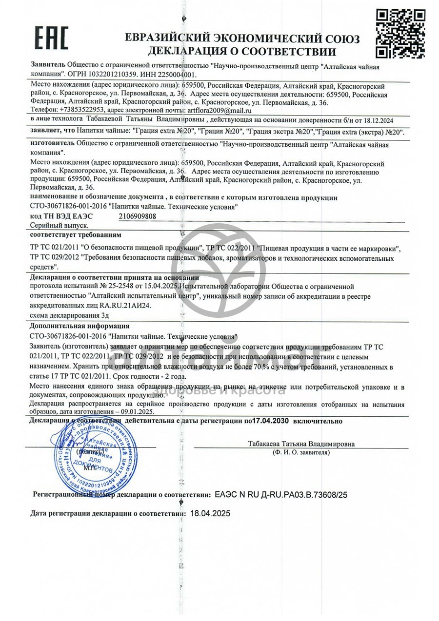 Есть вопросы по товару "Чайный напиток Алтайфлора Грация №20"?