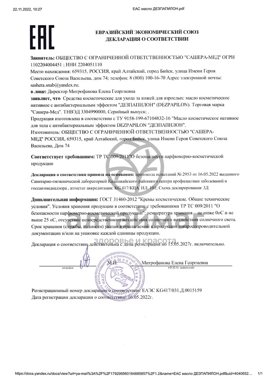 Дезпапилон масло нативное антисептическое (Dezpapilon)
