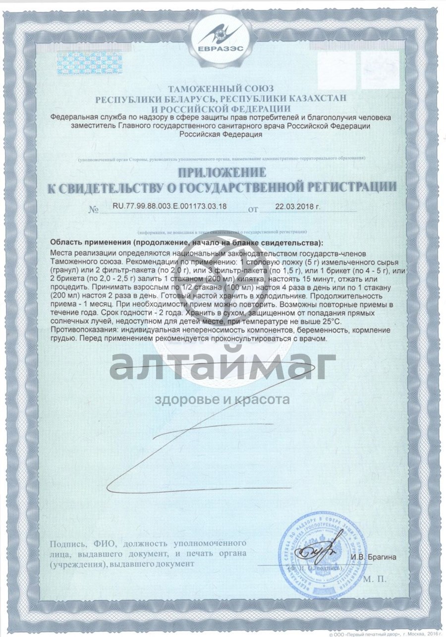 Взрослым 1 ст. ложку (5г.) измельченного растительного сырья или 2 фильтр – пакета (по 2 г.) заварить 1 стаканом кипятка (200 мл), настоять 15 мин., процедить, принимать по 1/3 стакана 3 раза в день во время еды.Продолжительность приема: 1 месяц