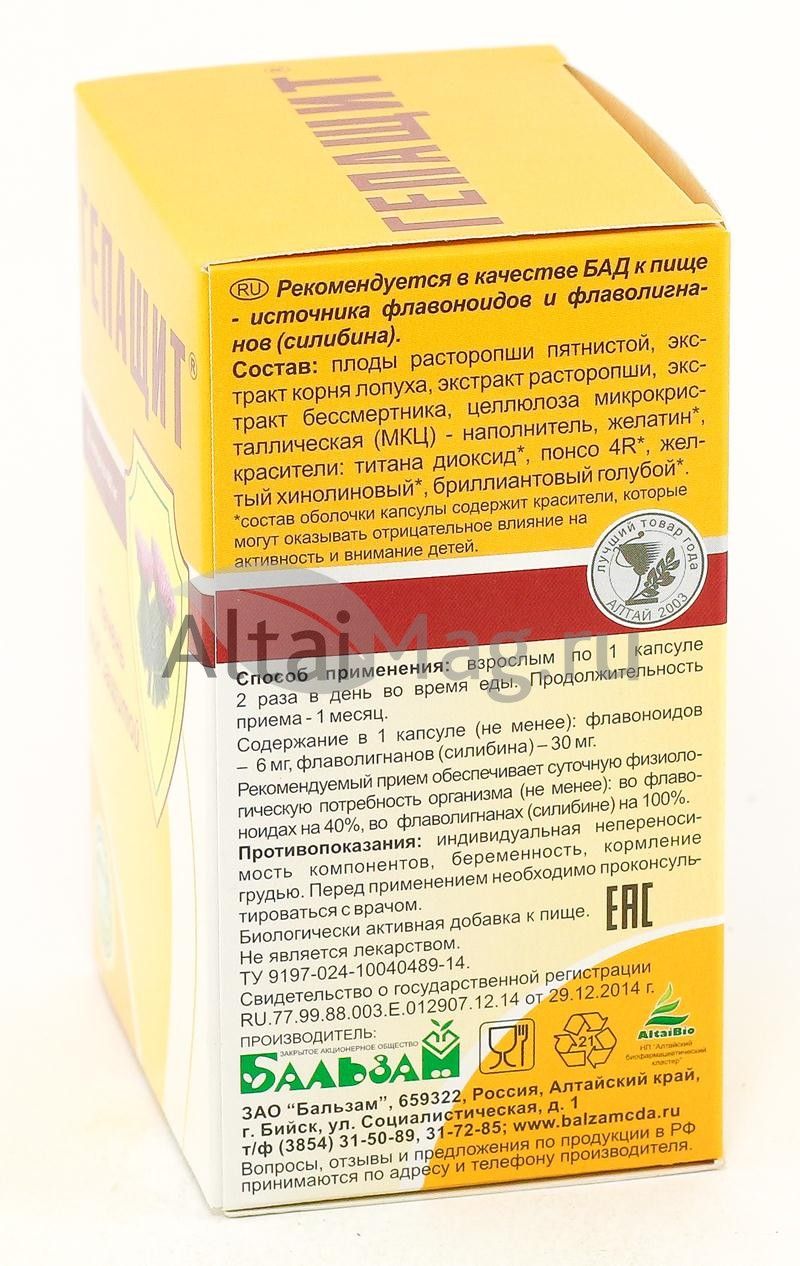 Защищает печень и нормализует выработку желчи. В состав препарата входят плоды алтайского растения «расторопша». Они оказывают направленное действие на клетки печени и желчного пузыря.