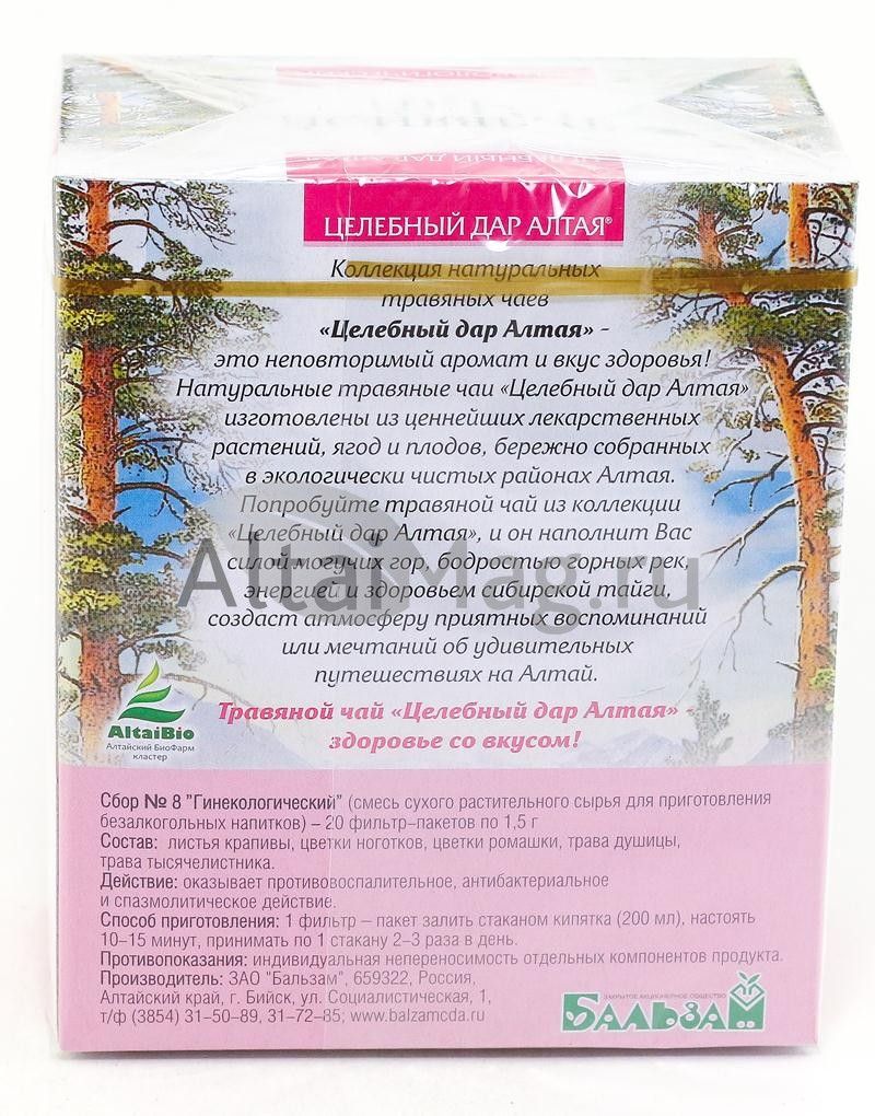 - Купите Гинекологический сбор №8, 20 пакетиков в Ельце по доступной цене 130 ₽ с доставкой на дом или заберите Ваш заказ в Ельце из ближайшего пункта выдачи, сделав заказ на AltaiMag.ru.