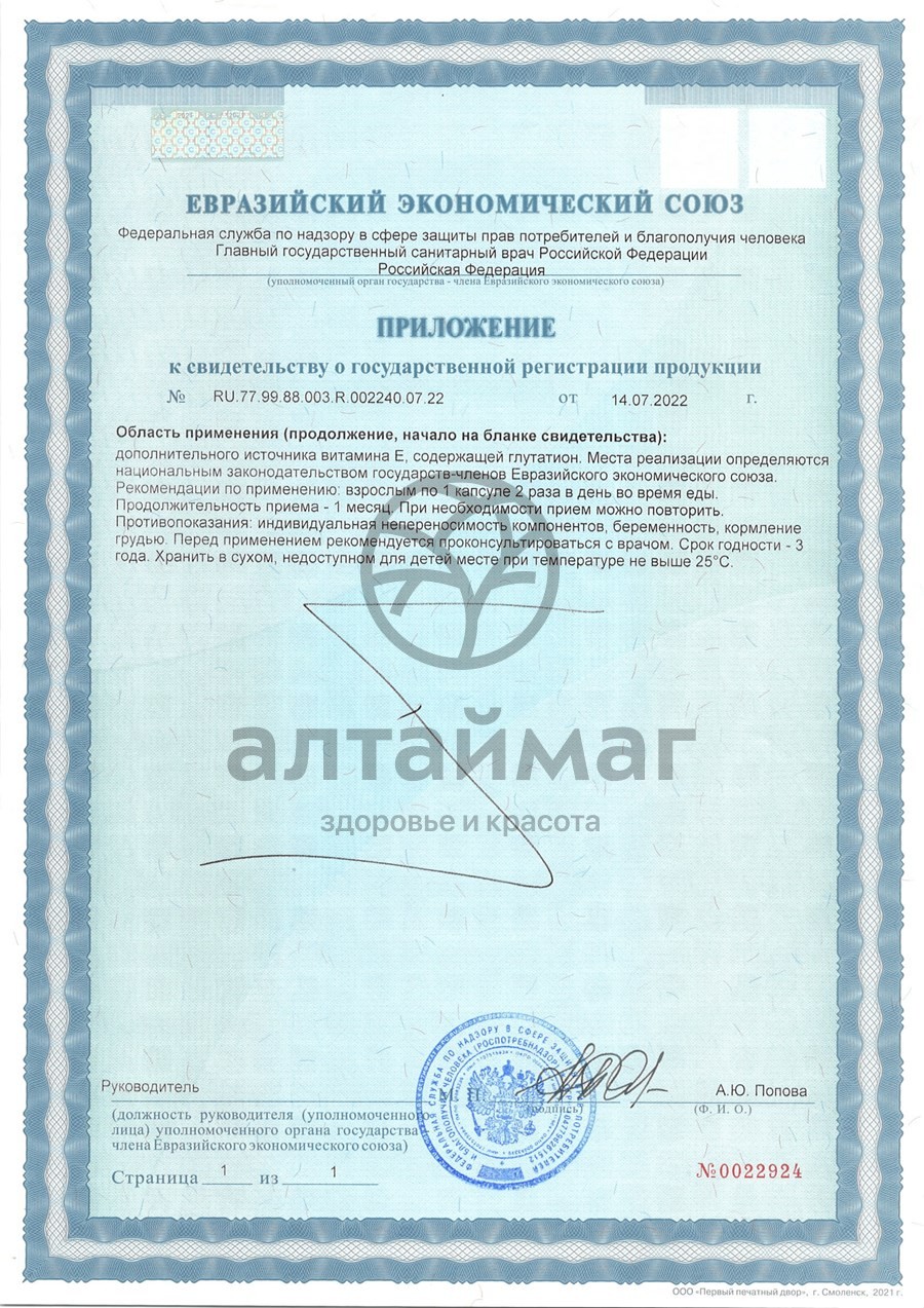 Антислеживающий агент микрокристаллическая целлюлоза, глутатион, антислеживающий агент кальциевая соль стеариновой кислоты, DL-альфа-токоферола ацетат, антислеживающий агент кремния диоксид, капсула (желатин).Способ применения