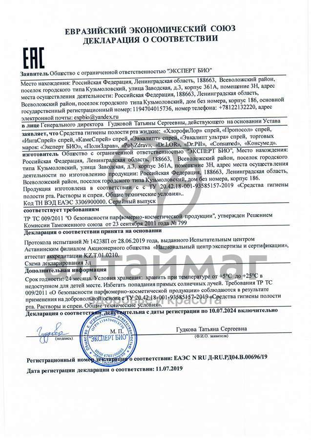• В карточке товара находится: описание, инструкция по применению, отзывы и сертификаты.
