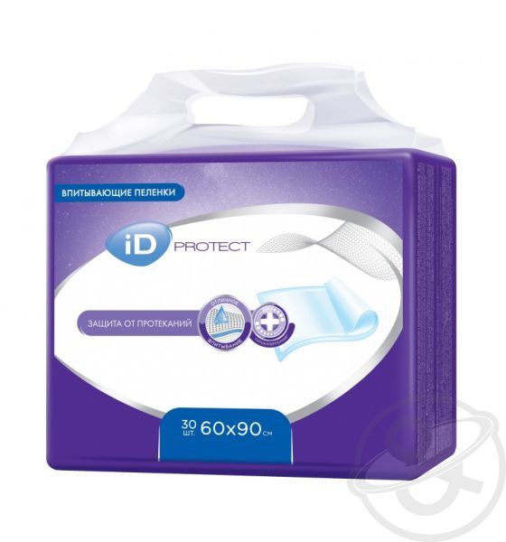 Впитывающие пеленки iD Protect универсальны в использовании, могут служить в качестве дополнительной защиты различных поверхностей от намокания при использовании вместе с подгузниками , впитывающими трусами и урологическими прокладками, при смене подгузников, а также при проведении различных процедур. Верхний слой пеленок выполнен из мягких, как хлопок, материалов, что обеспечивает комфорт при использовании, а нижний слой – из полиэтиленовой пленки, что исключает протекания.