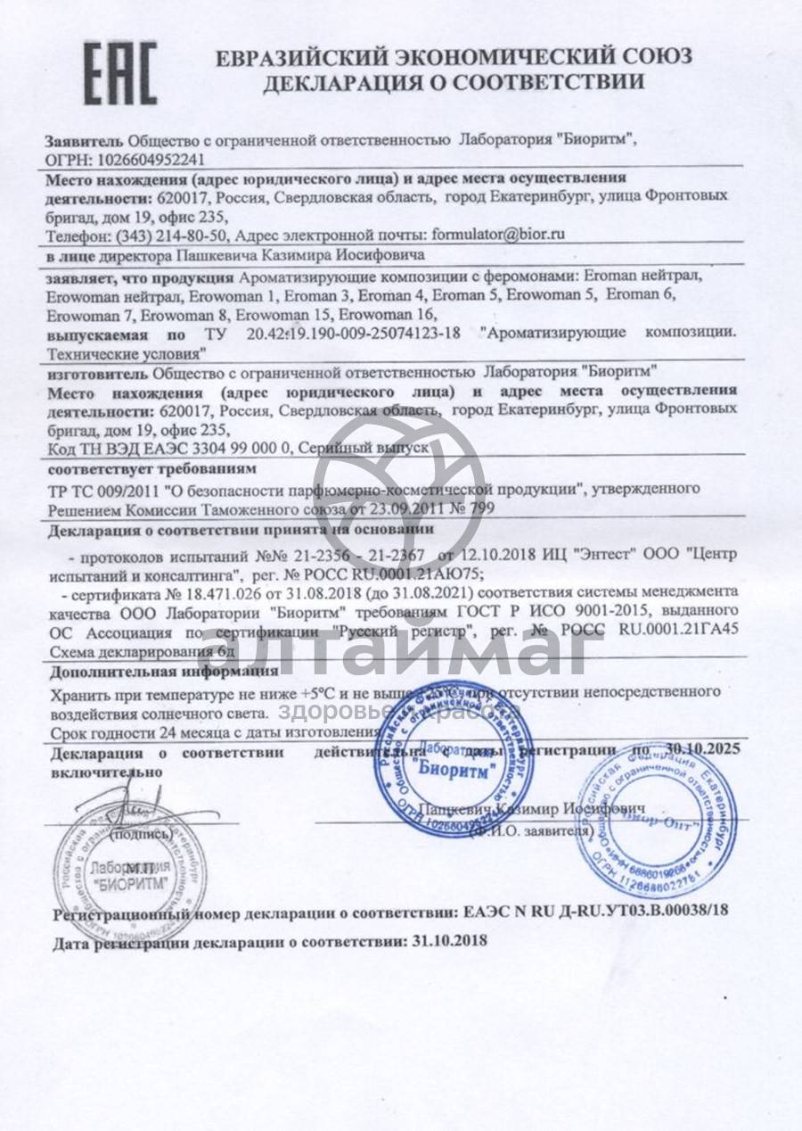 Есть вопросы по товару "Духи EROWOMAN с феромонами №8"?