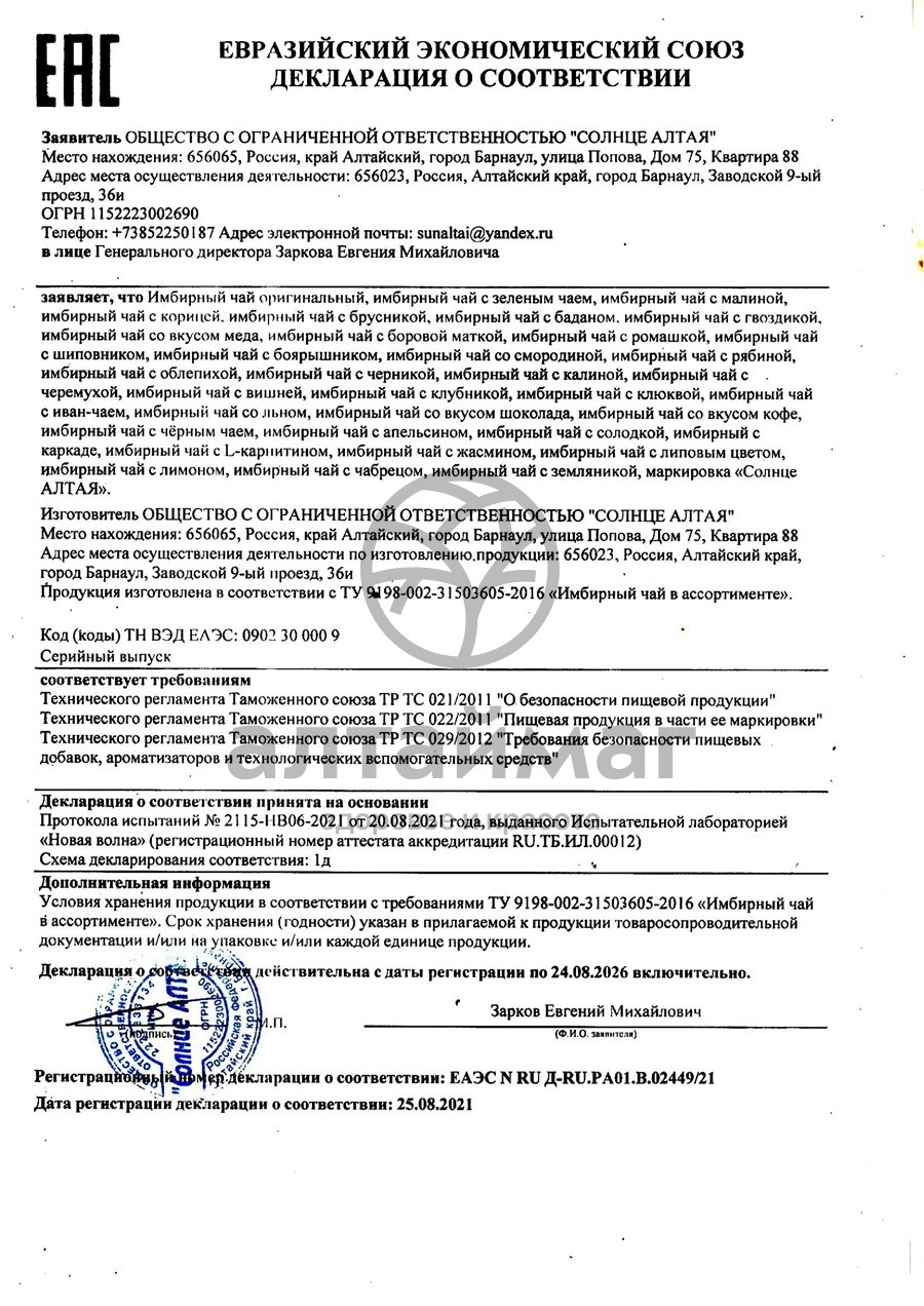 - Чтобы купить Имбирный чай с чабрецом Солнце Алтая 20 пакетиков совершите всего несколько шагов: укажите количество продукта и нажмите на кнопку «Купить».