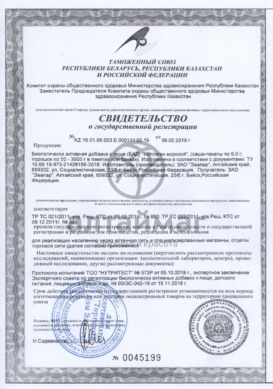 - Чтобы купить Коллаген Морской Эвалар 120г совершите всего несколько шагов: укажите количество продукта и нажмите на кнопку «Купить».