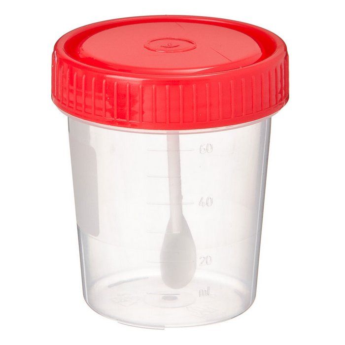 Контейнер одноразовый стерильный градуированный для сбора, хранения и транспортировки биоматериалов 60 мл с ложкой.