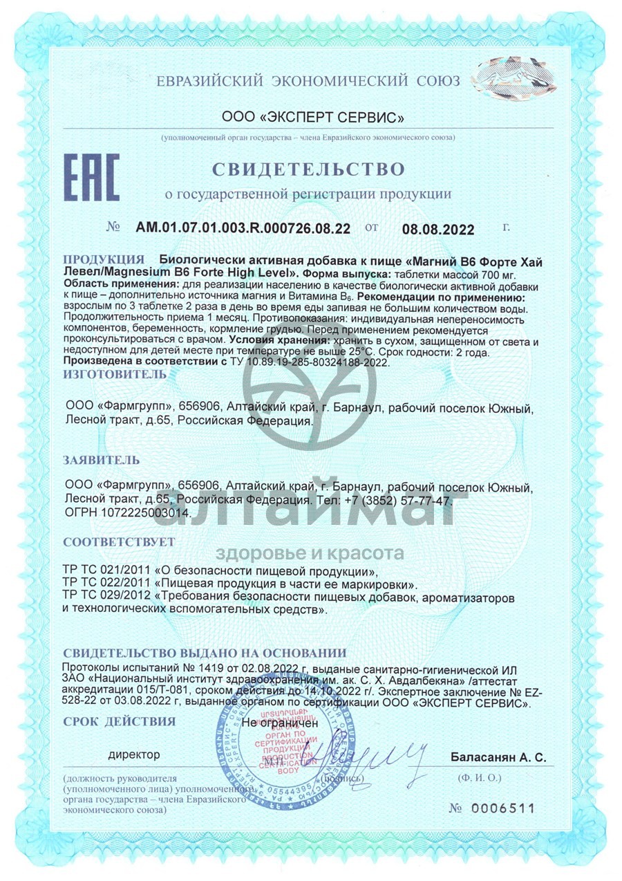 - Чтобы купить Магний B6 форте Хай Левел Фармгрупп №50 совершите всего несколько шагов: укажите количество продукта и нажмите на кнопку «Купить».