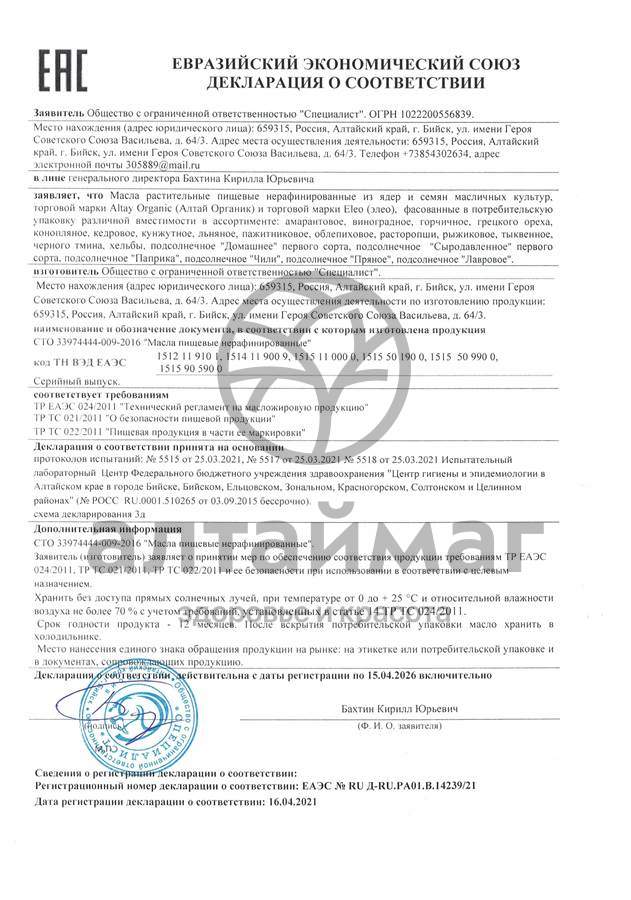 Масло пажитниковое от компании «Специалист» - это 100% натуральный продукт из семян пажитника, произрастающего в европейской части России. Бережная технология первого холодного отжима позволяет сохранить вкус и пользу масла в первозданном виде.
