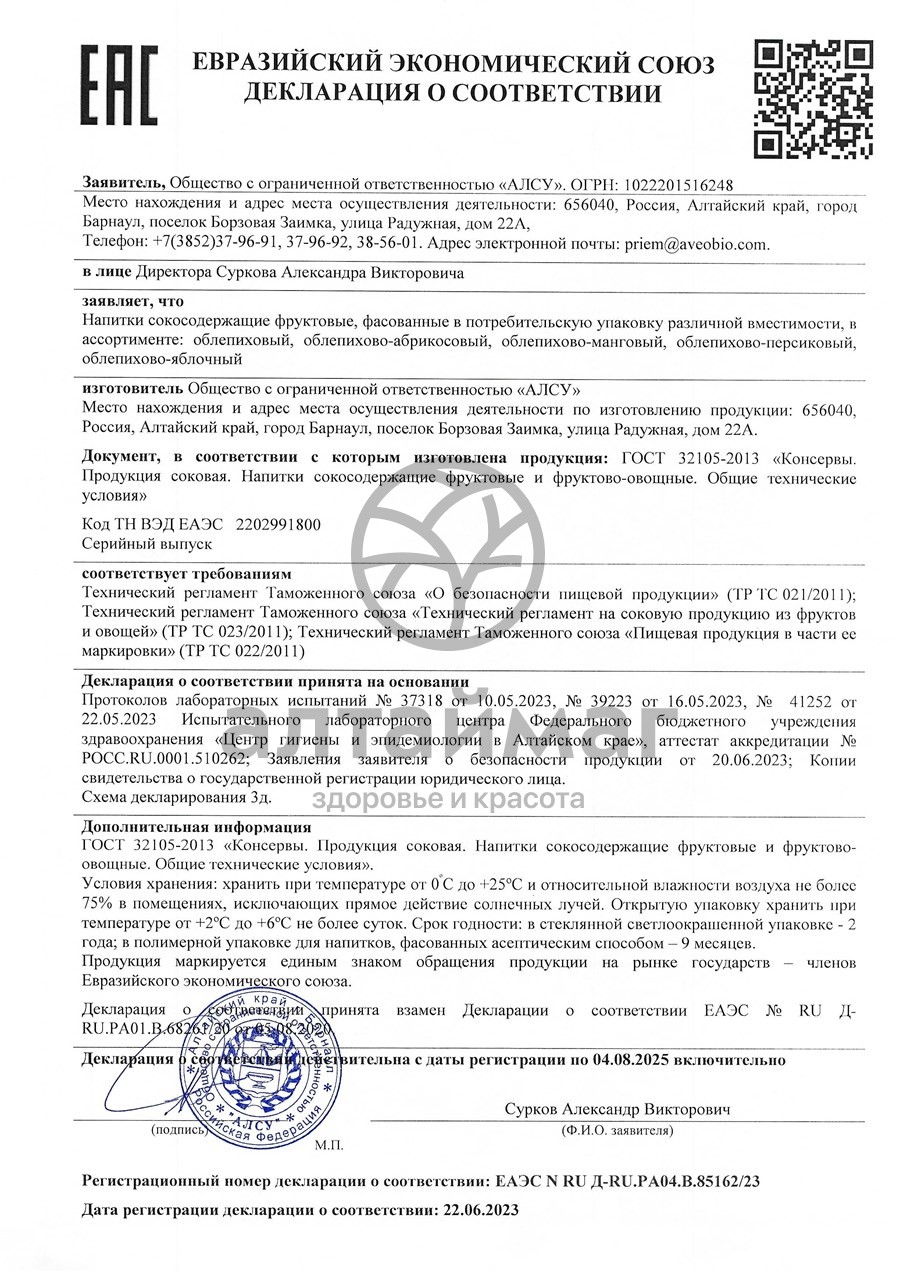 Есть вопросы по товару "Напиток сокосодержащий Облепихово-Манговый Алсу 500мл"?