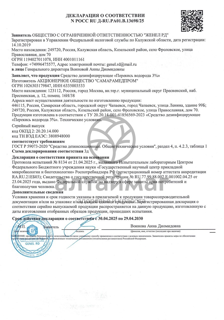 Есть вопросы по товару "Перекись водорода 3% 100мл"?