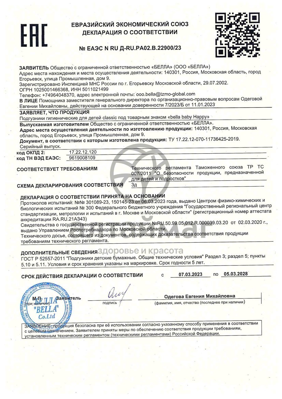 Высокое качество и безопасность подгузников Happy подтверждены дерматологическими тестами . Данные продукты также получили положительное заключение от Института матери и ребёнка и Национального института гигиены.