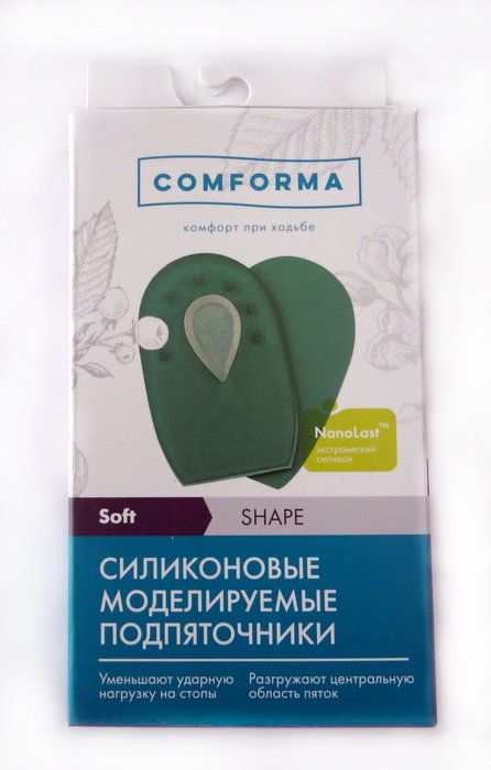 Подпяточники изготовлены из экстрамягкого силикона, смягчают ударную нагрузку на стопы и область голеностопа. Способствуют устранению болевых ощущений и дискомфорта при мозолях, трещинах, натоптышах, потёртостях, воспалених, ушибах. Уменьшают боль при пяточной шпоре.
