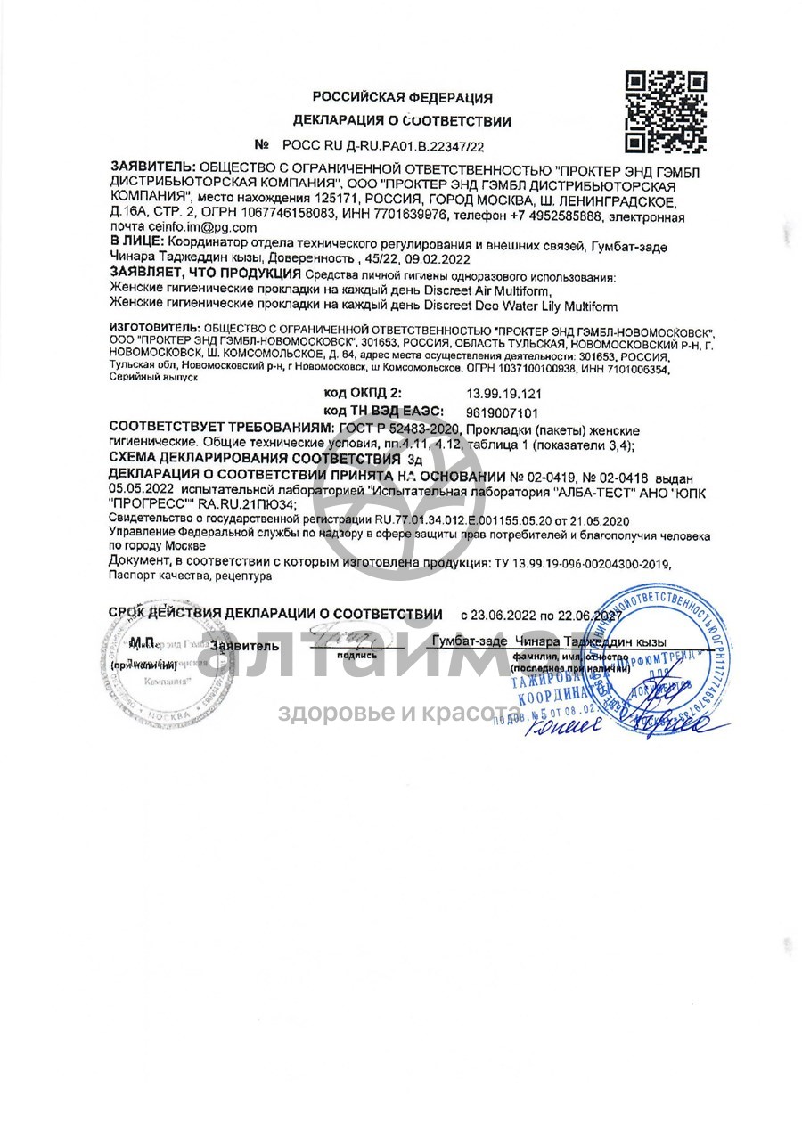 Есть вопросы по товару "Прокладки дискрит на каждый день air multiform №60"?