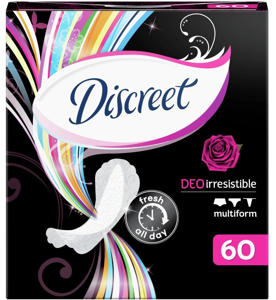 - Чтобы купить Прокладки ежедневные «Discreet» Deo Irresistible Multiform №60 совершите всего несколько шагов: укажите количество продукта и нажмите на кнопку «Купить».