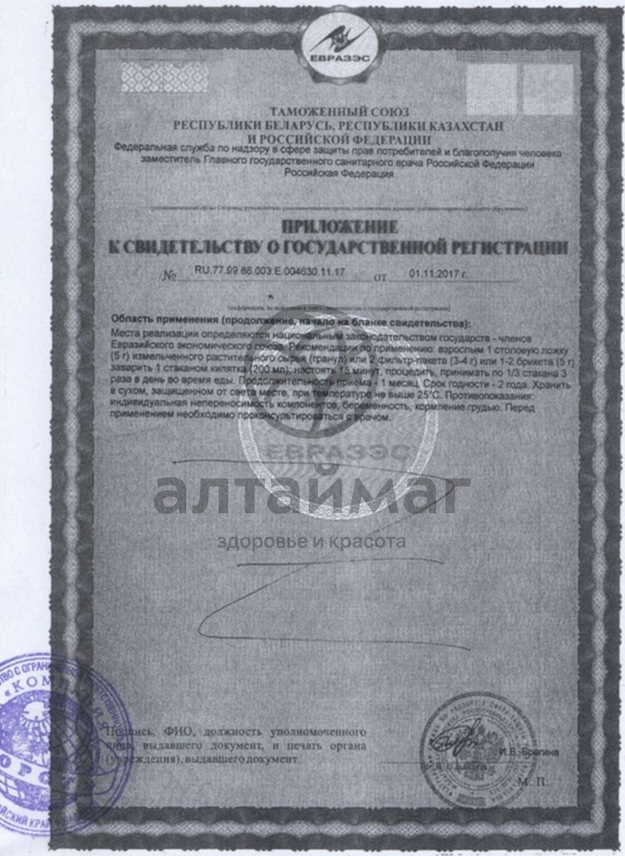 Рекомендуется при желудочно-кишечных, опухолевых, женских заболеваниях; панкреатите, болезнях селезенки, печени, желчевыводящих путей; при желчекаменной и почечнокаменной болезнях; при нарушениях обмена веществ, ревматизме, полиартритах и других заболеваниях суставов; при невралгии, недержании мочи, застарелых ранах, геморрое; при заболеваниях полости рта, кашле. Оказывает противоглистное, антимикробное, спазмолитическое, антикоагулянтное, вяжущее, желчегонное, мочегонное, противовоспалительное, кровоостанавливающее, кровоочищающее, общеукрепляющее действие.Масса нетто: