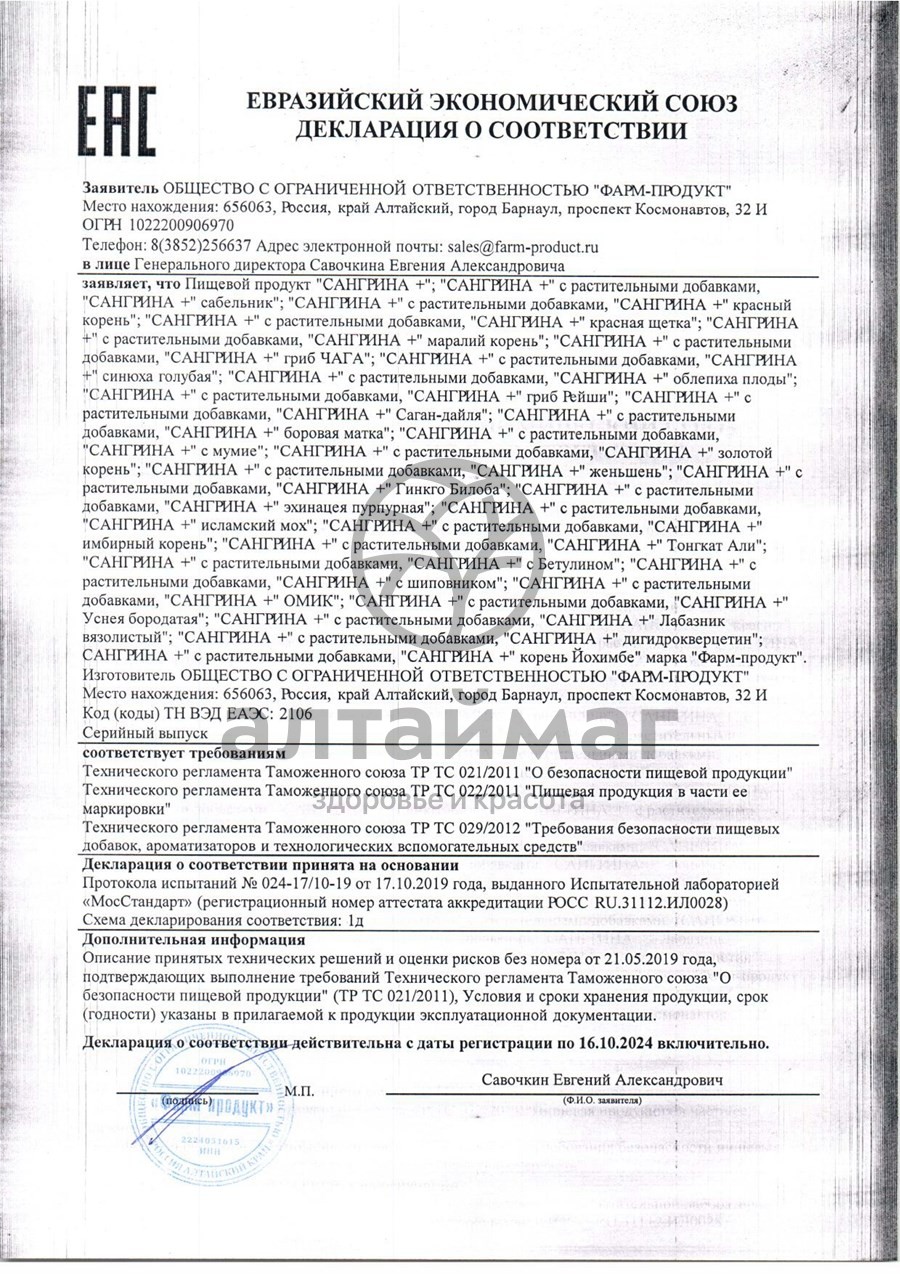 Есть вопросы по товару "Сангрина курс + Лабазник Фарм-Продукт 90 капсул"?