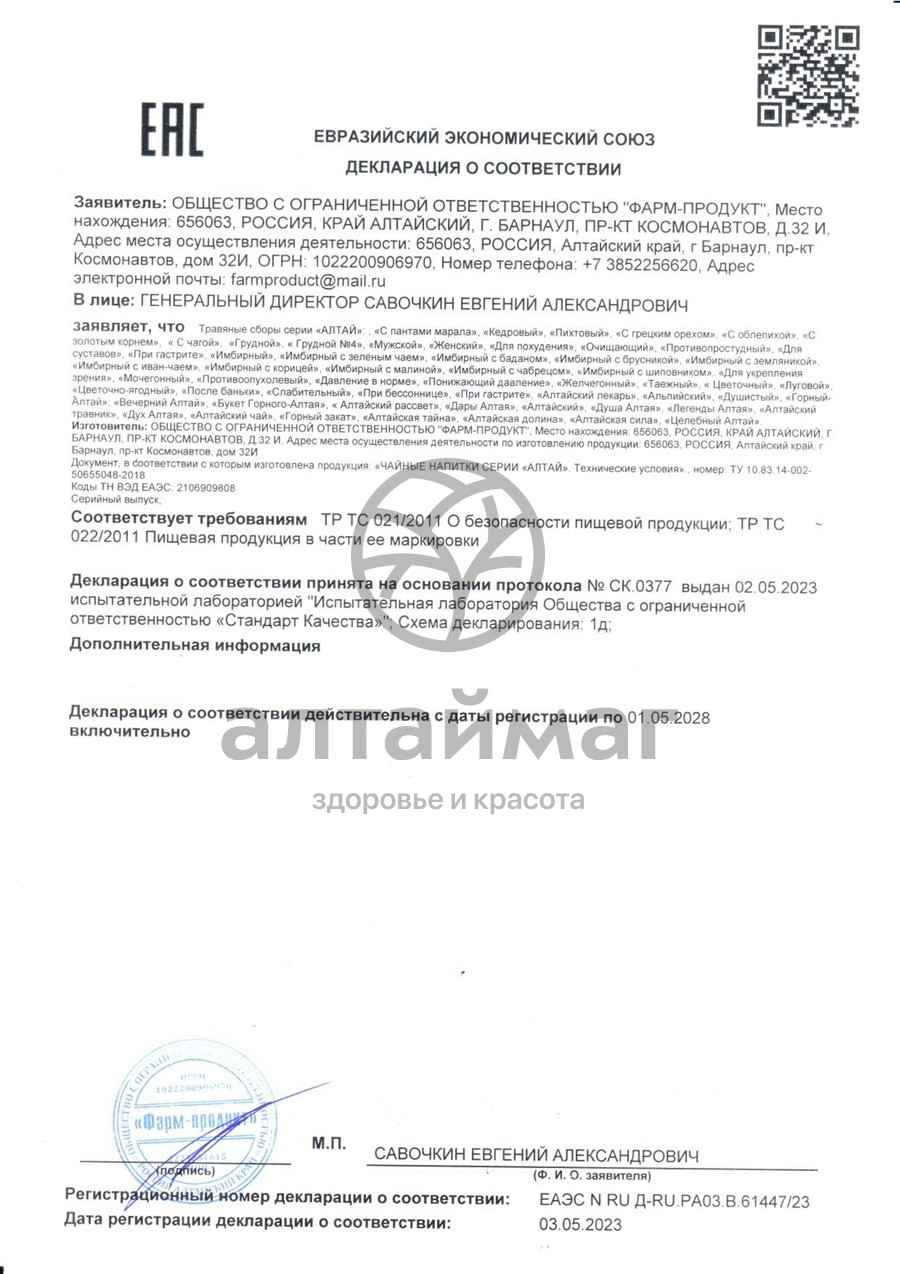 Есть вопросы по товару "Сбор травяной с пантами марала Фарм-Продукт 20 фильтр-пакетов"?