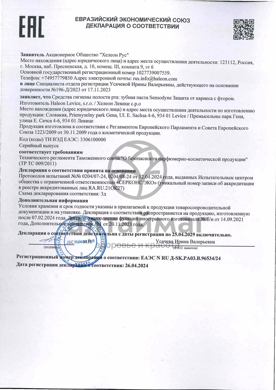Aqua, Sorbitol, Hydrated Silica, Glycerin, Potassium Nitrate, Cocamidopropyl Betaine, Aroma, Xanthan Gum, Titanium Dioxide, Sodium Fluoride, Sodium Saccharin, Sodium Hydroxide, Sucralose, LimoneneИнструкция по применению