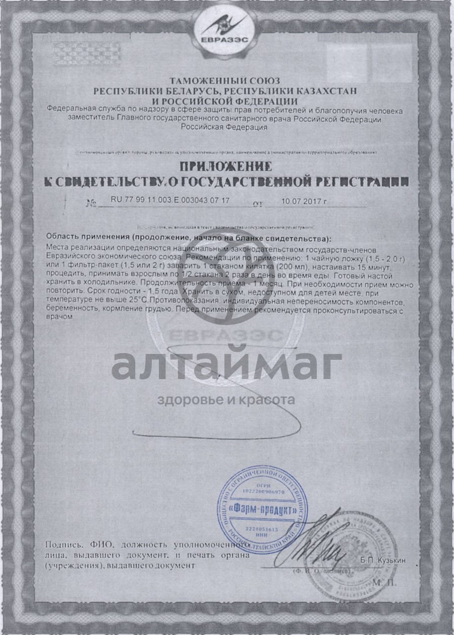 1 фильтр-пакет заварить 1 стаканом кипятка, настоять 15 минут, принимать взрослым по 1/2 стакана 2 раза в день во время еды.