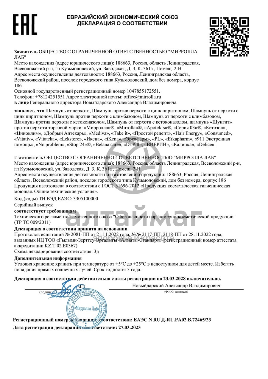 - Купите Шампунь против перхоти с кетоконазолом Мирролла 150мл в Ельце по доступной цене 285 ₽ с доставкой на дом или заберите Ваш заказ в Ельце из ближайшего пункта выдачи, сделав заказ на AltaiMag.ru.