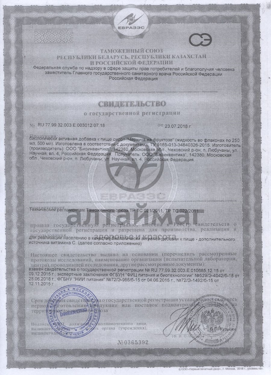 Сироп Черника на фруктозе, 250 мл в Ельце