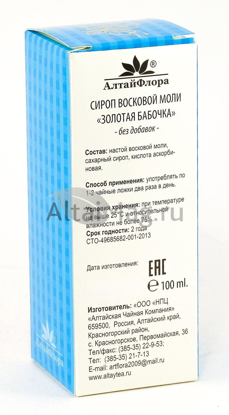 - Купите Сироп восковой моли золотая бабочка 100 мл в Ельце по доступной цене 267 ₽ с доставкой на дом или заберите Ваш заказ в Ельце из ближайшего пункта выдачи, сделав заказ на AltaiMag.ru.