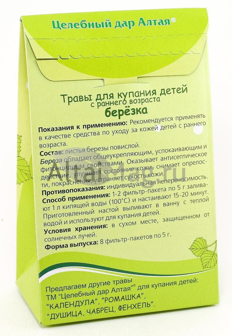 - Купите Травы для купания детей березка, 8 пакетиков в Ельце по доступной цене 119 ₽ с доставкой на дом или заберите Ваш заказ в Ельце из ближайшего пункта выдачи, сделав заказ на AltaiMag.ru.