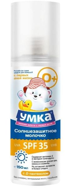 - Купите Умка молочко солнцезащитное для детей spf-35 150мл в Ельце по доступной цене 282 ₽ с доставкой на дом или заберите Ваш заказ в Ельце из ближайшего пункта выдачи, сделав заказ на AltaiMag.ru.