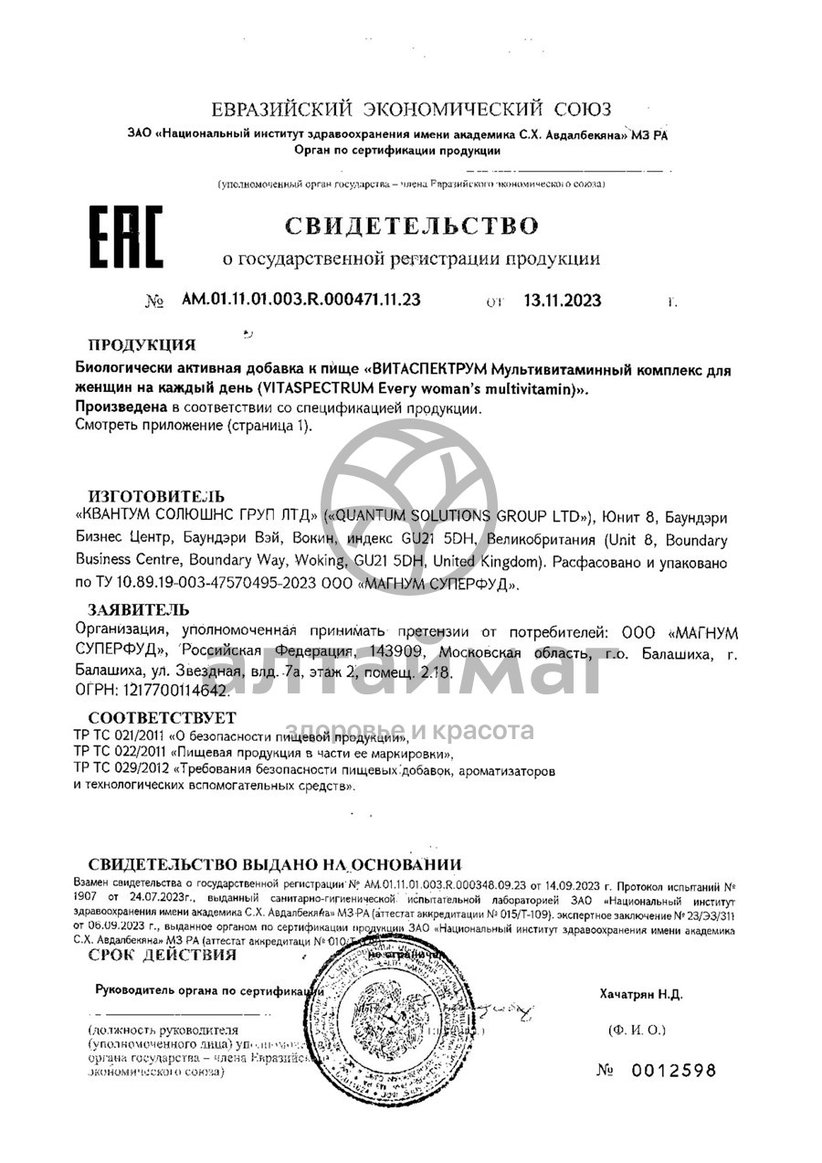 Есть вопросы по товару "Витамины для женщин VitaSpectrum 30 таблеток"?